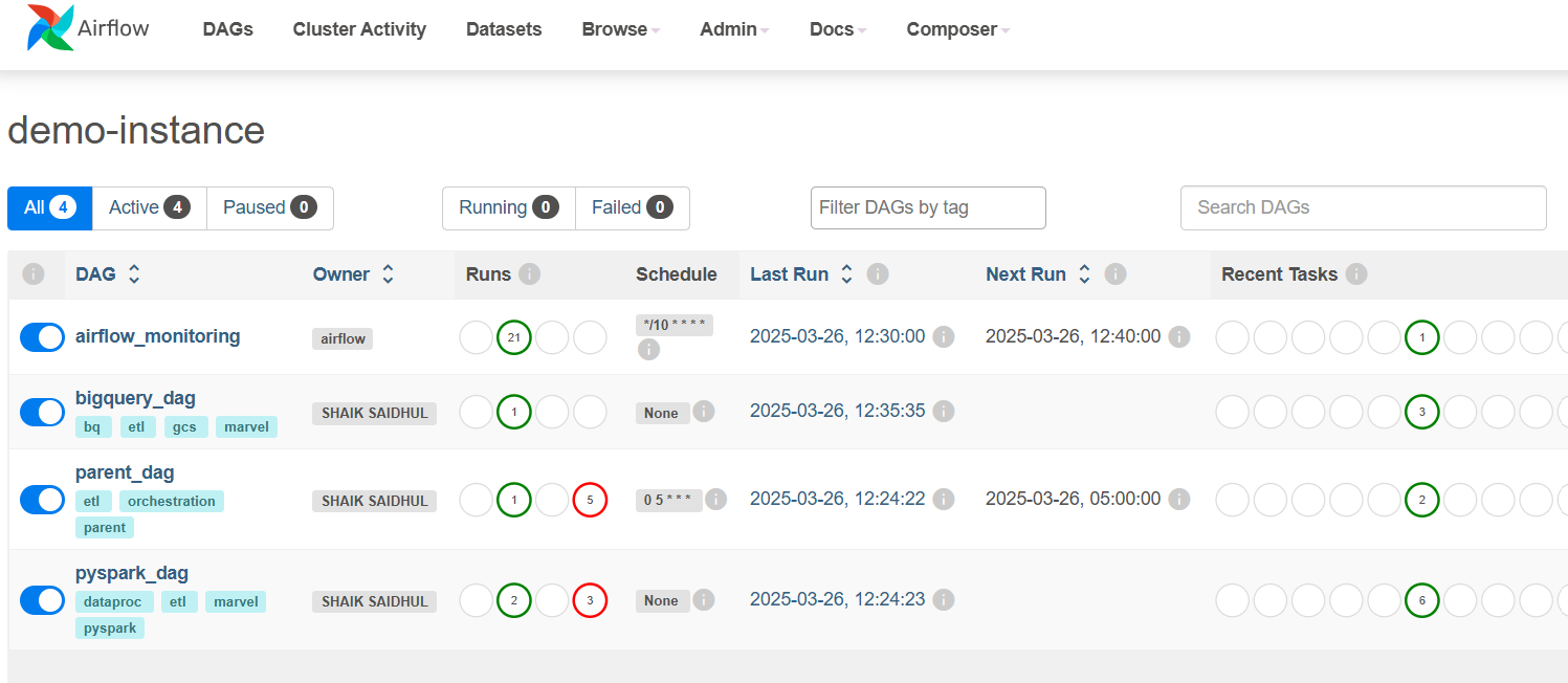 - Cloud Composer (Apache Airflow): Automates ETL pipelines and workflow orchestration.